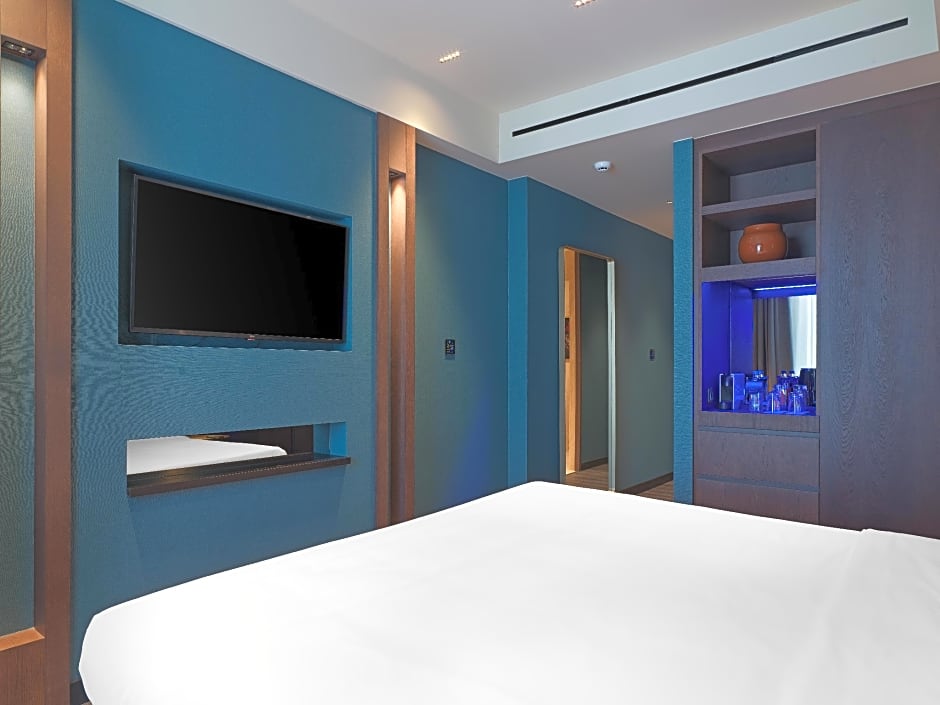 DESIGN DOUBLE STAR is 237 square feet and includes either a king-size bed 150-183 width or a double bed 131-150 width plus desk and is Wheelchair-accessible.